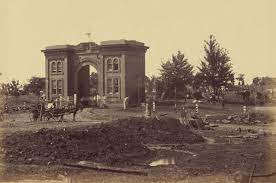 The next day, Mrs. Musser went to check on the hogs and they, along with all the wood, had been scavenged by the soldiers. After failing to locate some supplies, she decided that the army should provide goods since they benefited from the belongings of the local residents (Porch 21). She returned with an apron full of coffee, sugar and hardtack (Porch 21). Once the battle was over and the soldiers marched out of town, the Thorn family began journeying back to the Gatehouse. They ran into Mr. McConaughy, the President of the cemetery, who told her, “Hurry on home…there is more work for you than you are able to do.” Later she received a note from McConaughty stating, “Mrs. Thorn, it is made out that we will bury the soldiers in our cemetery for a while, so you go for that piece of ground and commence sticking off lots and graves as fast as you can make them.”